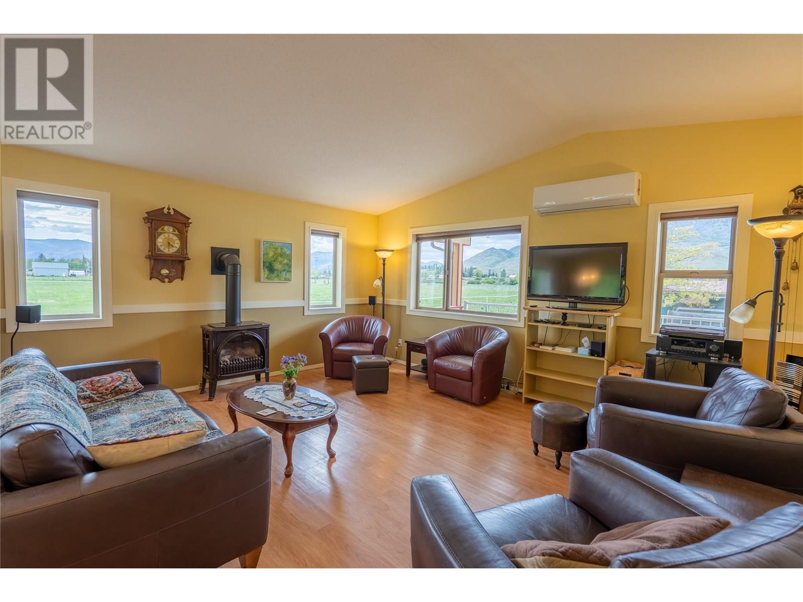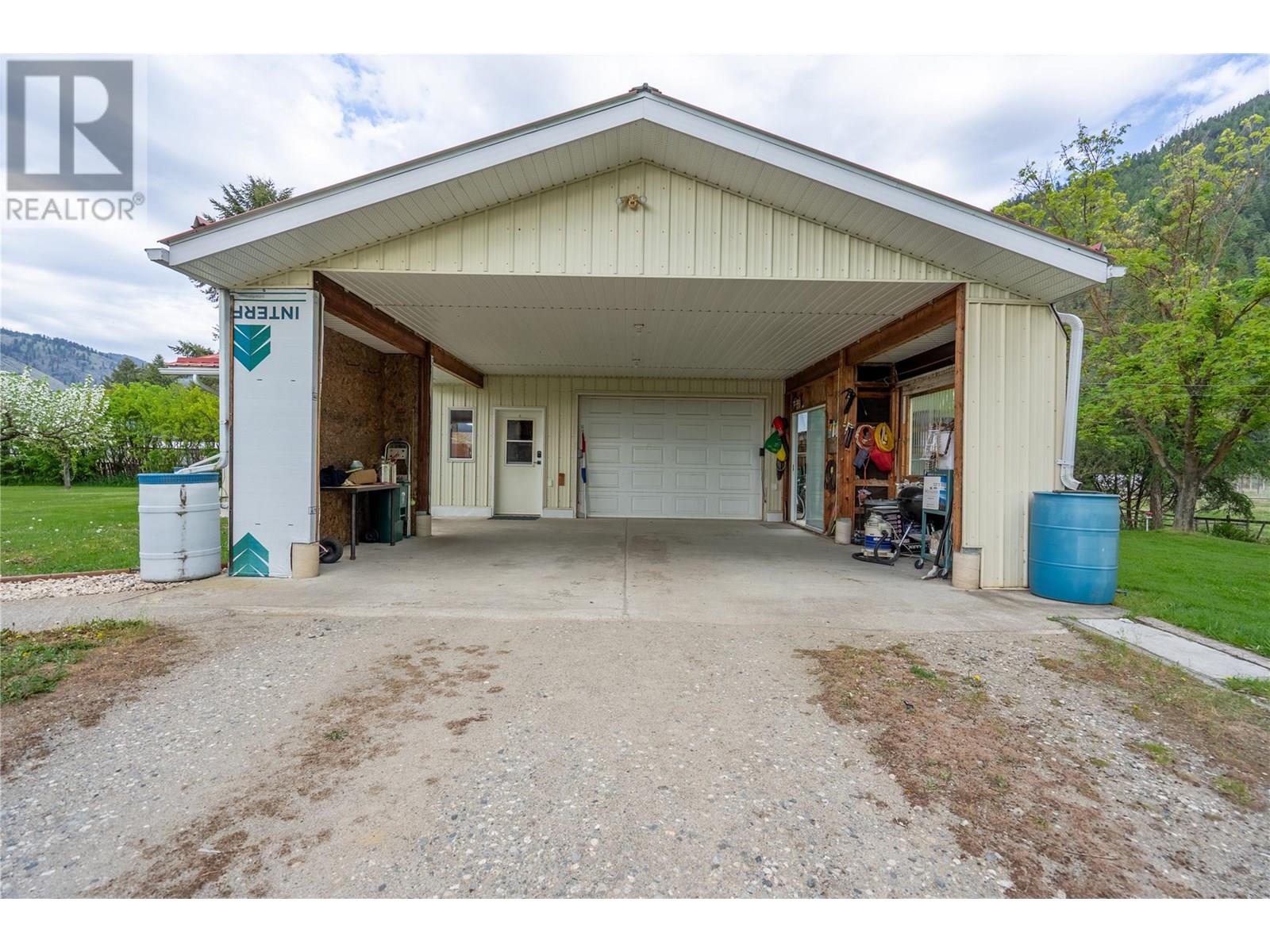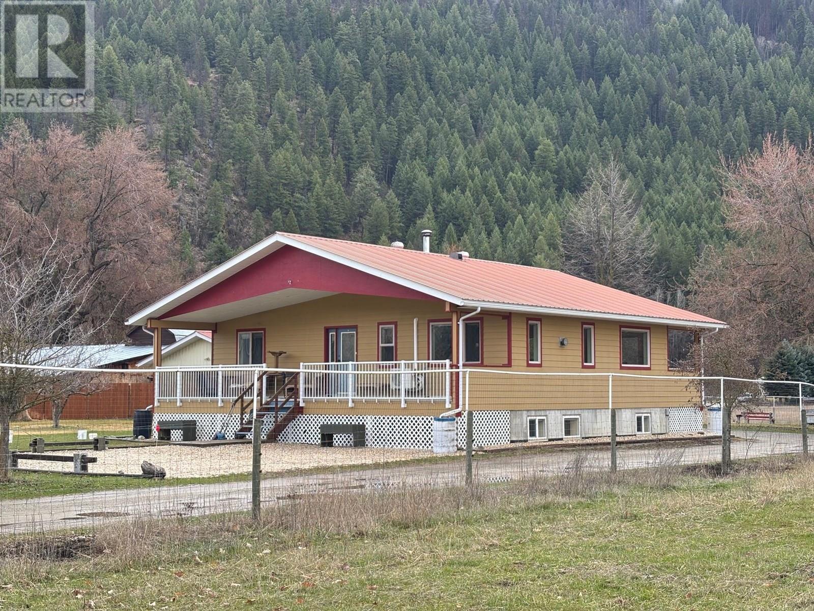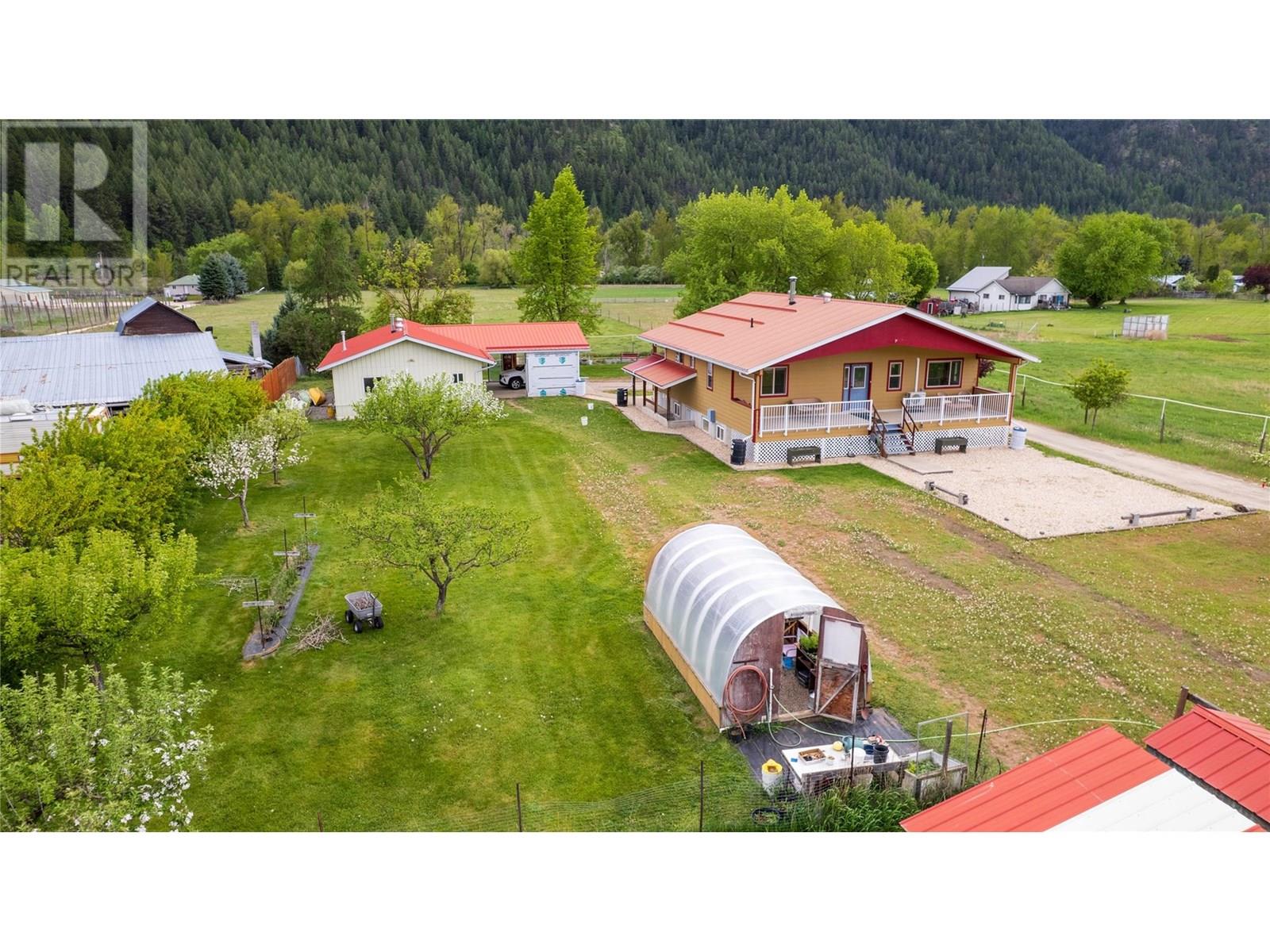 5.41 acre riverfront agricultural property. Nice private beach area. 2006 quality built family home with full basement, maintained to like new. 1200 sq ft + full basement. Heated tile flooring, heat pump + gas freestanding stove for living area on main floor, wood stove downstairs. Hardy board siding + metal roof. 2 x 300 sq ft covered decks. Garage/shop is 24 x 36 + a separate 25 wide x 22 ft long carport. Large self contained suite in the garage/shop. Garage suite has heat pump + gas heat. Again metal roofs. Property is fenced for animals. Lots of out buildings. Chicken coops, fruit trees + garden. Very private cul-de-sac. Just 5 minutes to downtown. Great river, valley, + mountain views. (id:4069)
