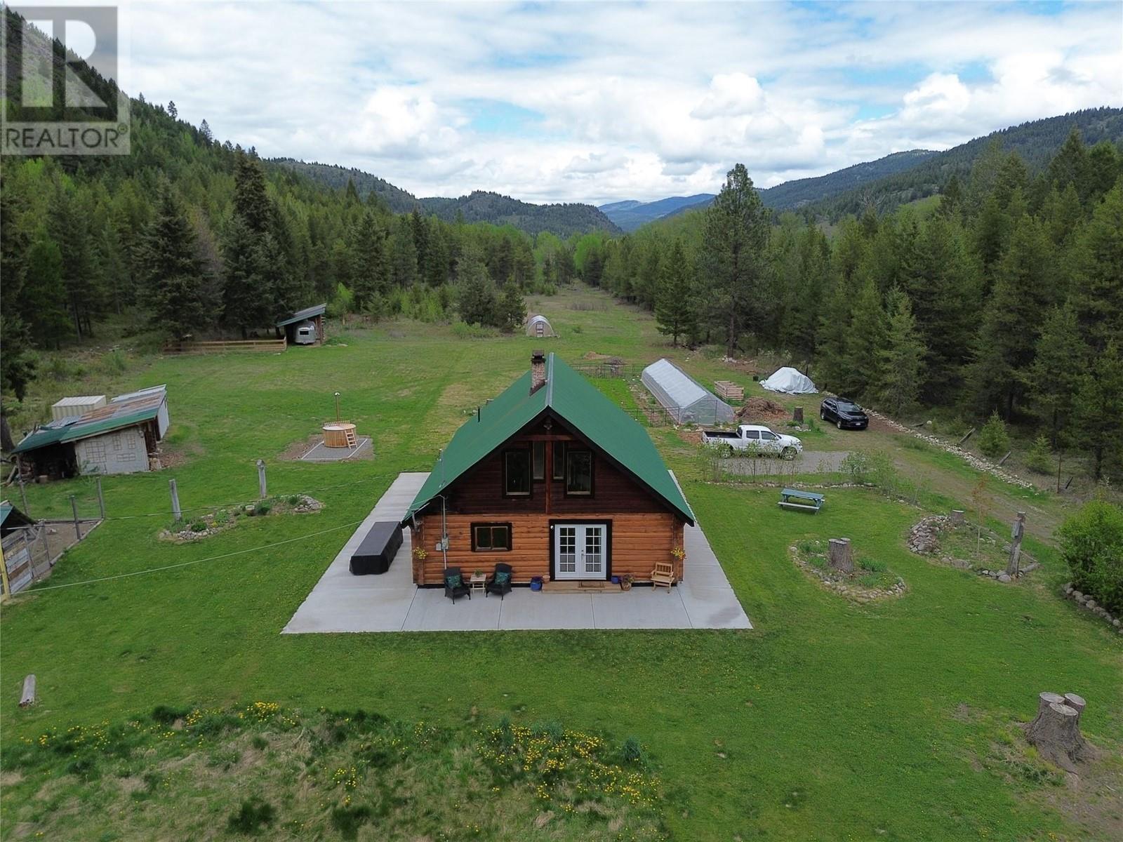 Welcome to your secluded sanctuary just off Highway 3 on Bombini Road! This stunning log home, built in 2000, sits on 74 private acres with two creeks crossing the property. Tucked along the Trans-Canada Trail, you can enjoy the best of both worlds: total privacy with walkable access to the amenities of Greenwood. Inside, you’ll find soaring vaulted ceilings, incredible natural light, and substantial recent updates including a fully renovated bathroom, new flooring, and subfloor throughout. The property features 12 acres of usable flat land, two greenhouses (30x12 and 60x12 with retractable sides), a chicken coop, and a fenced area perfect for goats or other farm animals. With no zoning and located in the ALR, the property offers flexibility for agricultural and residential uses. Plus, it’s updated to Firesmart standards for peace of mind. A true must-see for anyone seeking space, beauty, and self-sufficiency in nature! Call your Local Real Estate Agent today! (id:4069)
