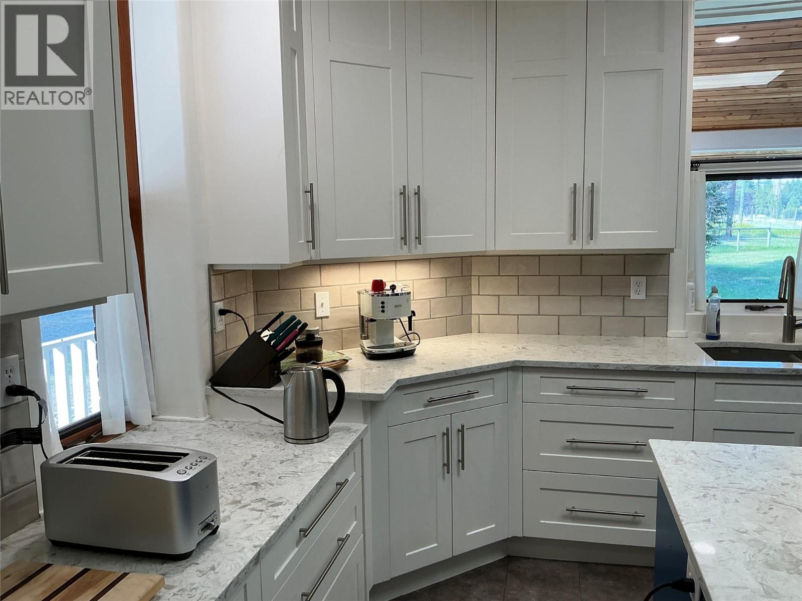 Experience modern comfort and sustainability on this 7 acre Hobby Farm with a beautifully renovated 3 bed 3 bath home. Modern upgrades shine throughout, including custom cabinets, quartz counters, tile backsplash, and a gas cooktop. Enjoy energy-efficient features like a new furnace, air conditioning, electronic thermostat, water softener, and a 7.68KW solar panel system. The property boasts floor heating in the ensuite, new windows, a concrete deck, and a lush organically maintained garden with fruit trees and berries. Both bathrooms have been elegantly renovated with new fixtures and vanities. Meticulously cared for, this home offers a perfect blend of comfort and eco-conscious living for a truly exceptional lifestyle. Lovely guest cabin with a fully equipped kitchen, living room, cozy bedroom, and bathroom. The property features a deer-fenced perimeter, ensuring peace and privacy. Additionally, the garden and livestock area are securely fenced, offering a serene and safe haven. (id:4069)