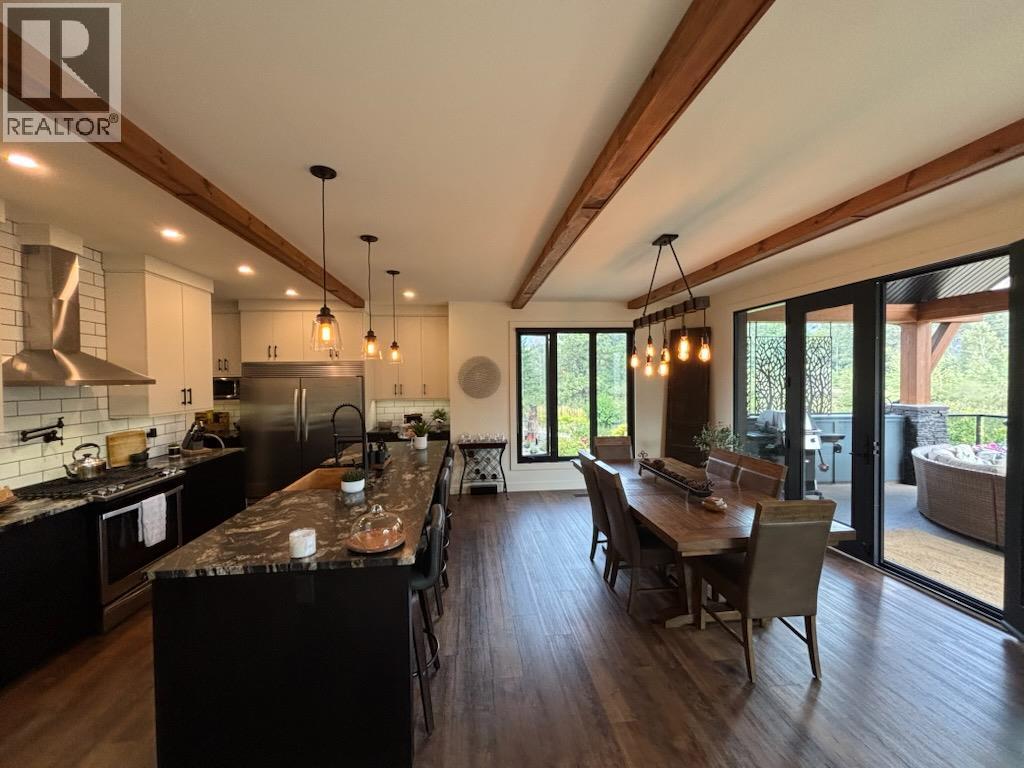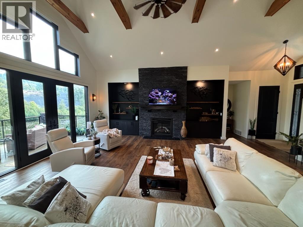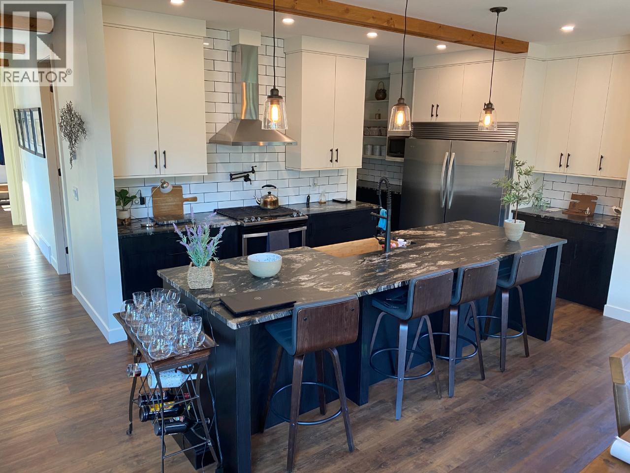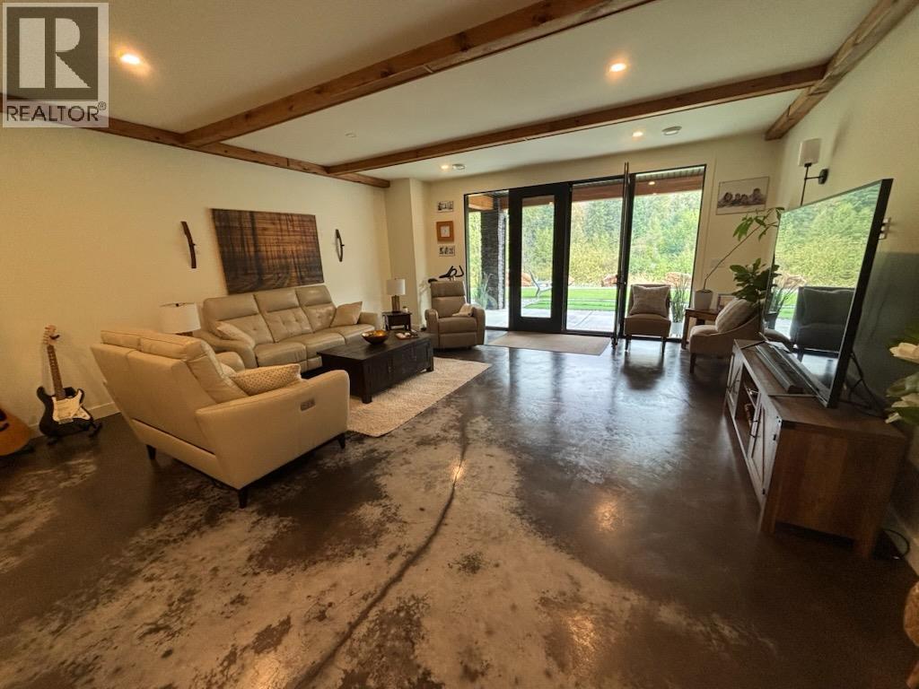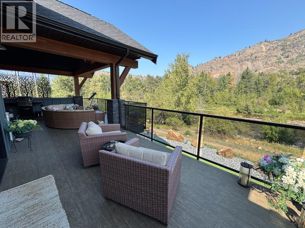 Your own private beach. Amazing riverfront view home in Grand Forks' executive River Meadows subdivision. Built in 2019. 3 master suites with their own 5 pc. bathrooms and walk-in closets. 5 bath immaculate custom-built home. Upstairs office/den could be 2nd upstairs bedroom. Bedrooms have own ensuite + walk-in closet. Heated triple garage. Home is over 4000 sq ft. finished. Property is .363 acre + has RV site with hook-ups. High quality finishes includes leathered granite throughout. Large kitchen c/w butler pantry. The large master bedroom features a large ensuite bathroom and large daylight walk-in closet. Other bedrooms have ensuite bathrooms + walk-in closets. Main floor laundry/mudroom off garages entrance. Heated triple garage. In-floor heat in basement + garage floors. On-demand water system. Xeriscaping yard for low maintenance. Location, location, location ? executive riverfront. 2 large backyard decks for relaxing or entertaining guests. Short walk to downtown, city park, recreation, sandy swimming holes, city walking trails + even pickle ball courts. See the video. (id:4069)