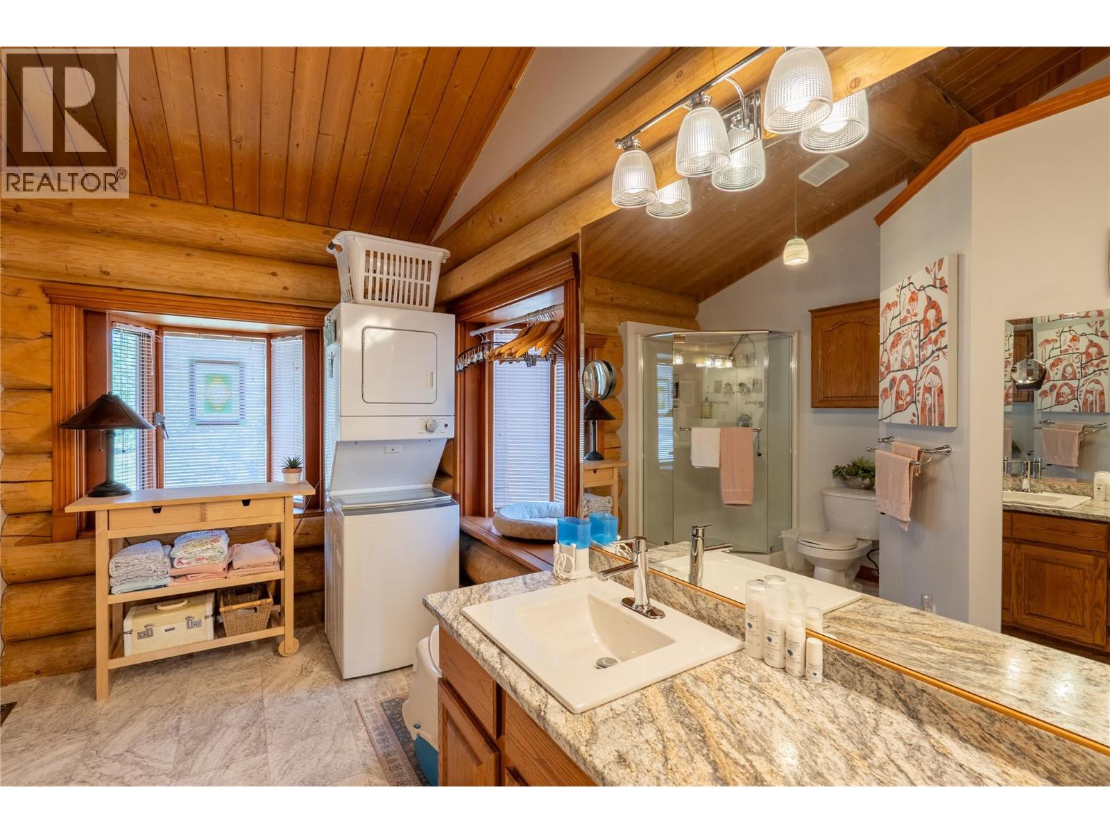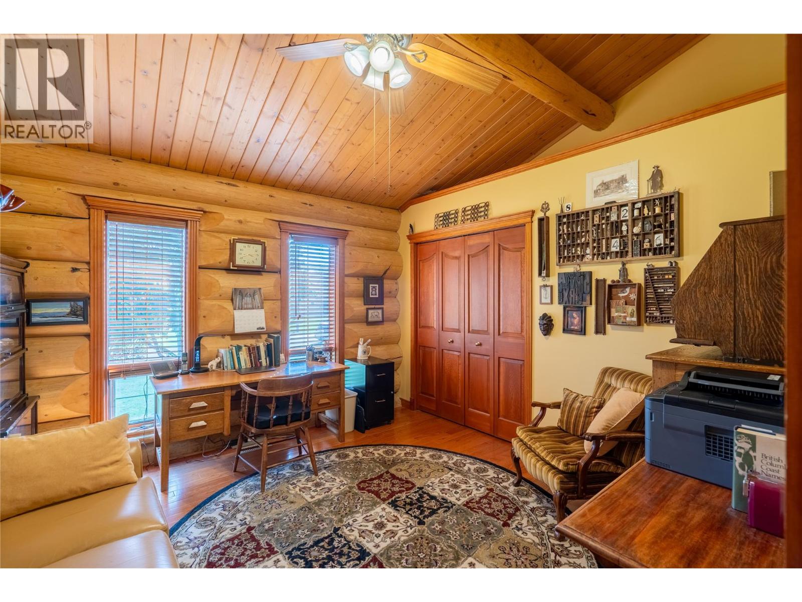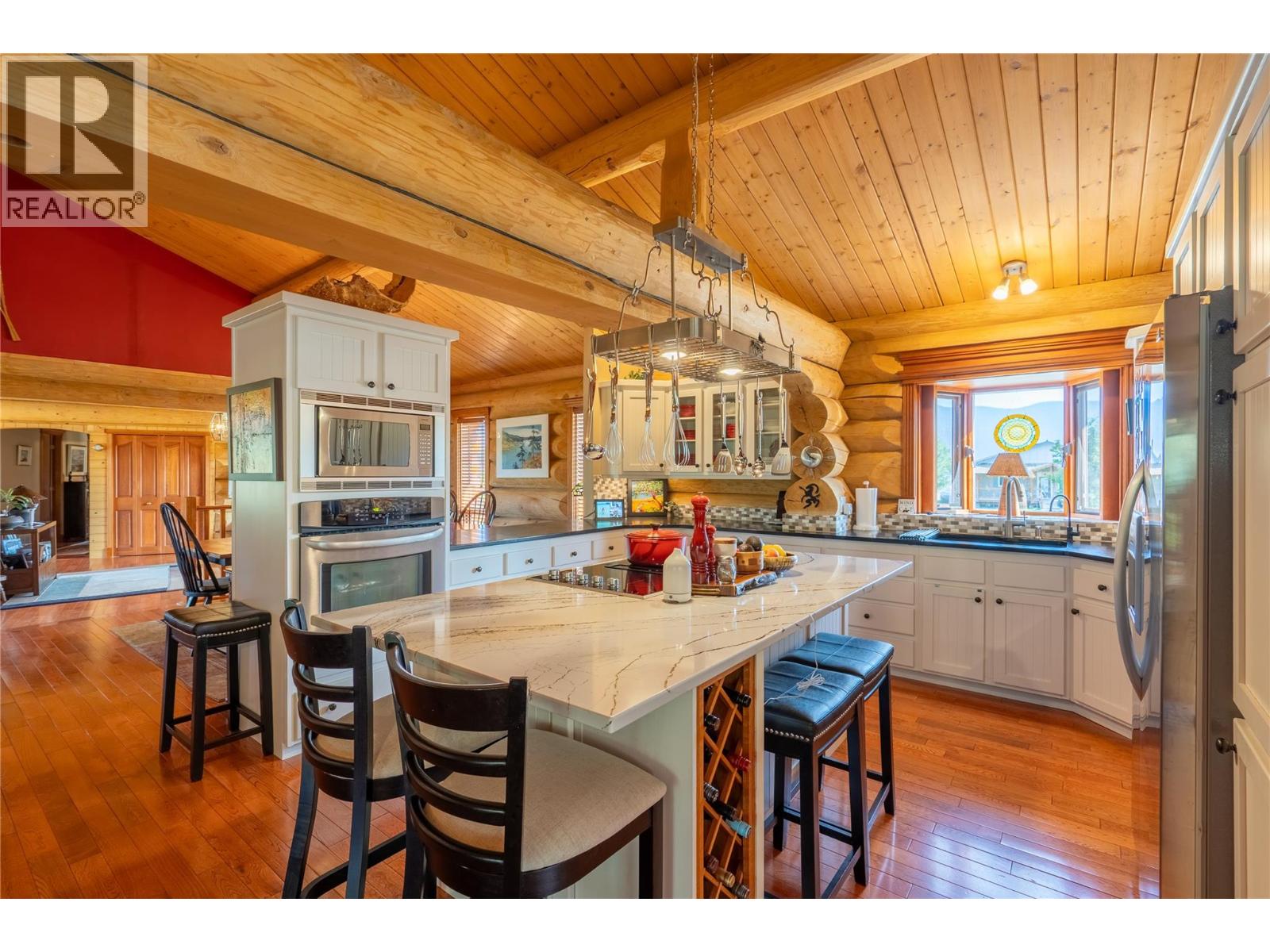 4645 sq ft finished. Custom built executive log home built in 1994. Great for entertaining. 4 bedroom, 4 bath. Vaulted ceilings. Panoramic views. Dream kitchen new in 2021, with butler pantry. The large master bedroom features a large ensuite bathroom and large walk-in closet. Main floor laundry. 4 natural gas heat sources, 1 insert + 3 free standing. Solar roof panels include Net Metering with Fortis. High quality finishes include hardwood floors throughout. Large 24x30 double garage with separate 10x18 enclosed workshop. Self contained 750 sq ft suite with its own laundry + separate entry. Hobby room with its own sink. Tons of storage room in out. Property is .89 acre, flat + partially fenced. Winter warmth and all season comfort for the upscale lifestyle. Full length wrap-around backyard deck for relaxing or entertaining guests. Excellent water source from Sion Water District. Quiet neighborhood. Furniture is negotiable. See the video and Seller's info package in Documents. (id:4069)